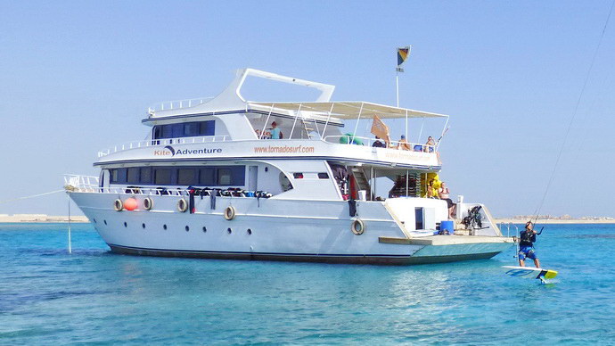 "Kite Adventure" ist ein speziell auf Kitesurfen ausgerichtetes Boot mit 30m Länge, 8m Breite und 4 Decks. Es verfügt über 10 modern und komfortabel ausgestattete Doppelkabinen. Jede Kabine mit eigener Dusche und Toilette. Auf diesem Boot lebst du wie im Hotel, aber direkt am Kite Spot in der Soma Bay.